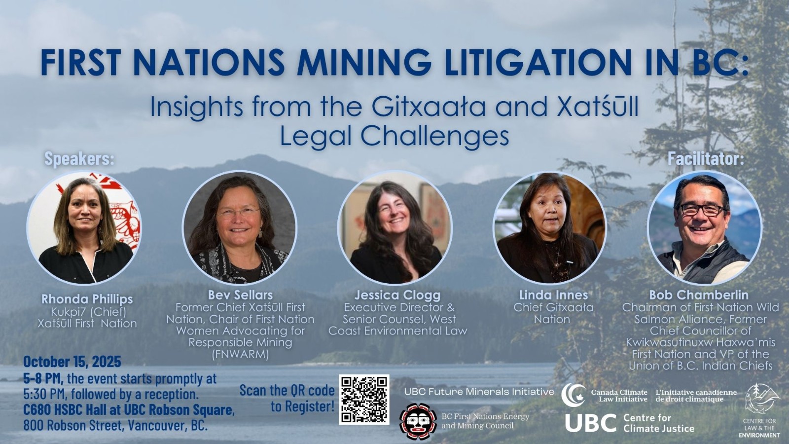 This panel will explore two landmark legal challenges shaping the future of mining in British Columbia. Panellists will examine the Gitxaała Nation’s case against the province’s mineral tenure regime and the Xatśūll First Nation’s judicial review of decisions related to the Mount Polley mine disaster. Together, these cases highlight how First Nations are using the courts to assert jurisdiction, demand accountability, and redefine the legal landscape of resource governance in BC.
